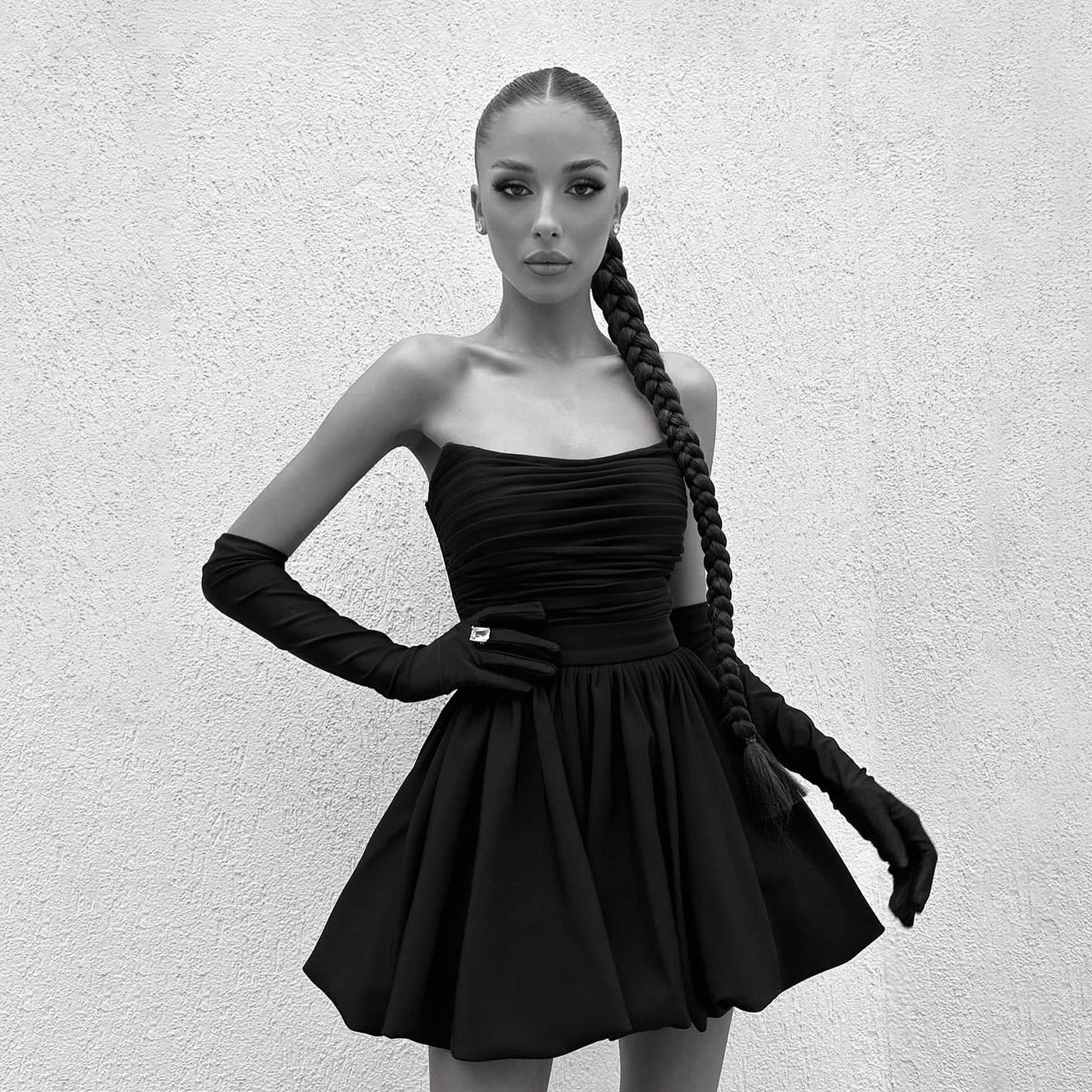 Channel classic elegance in this chic little black dress! Featuring a flattering strapless design and beautiful pleated A-line skirt, this dress is perfect for a cocktail party, dinner date, or any special occasion. The timeless black color and simple yet stunning silhouette capture Audrey Hepburn’s iconic style, giving you a look that’s both sophisticated and playful. Pair with your favorite accessories to complete your elegant ensemble.