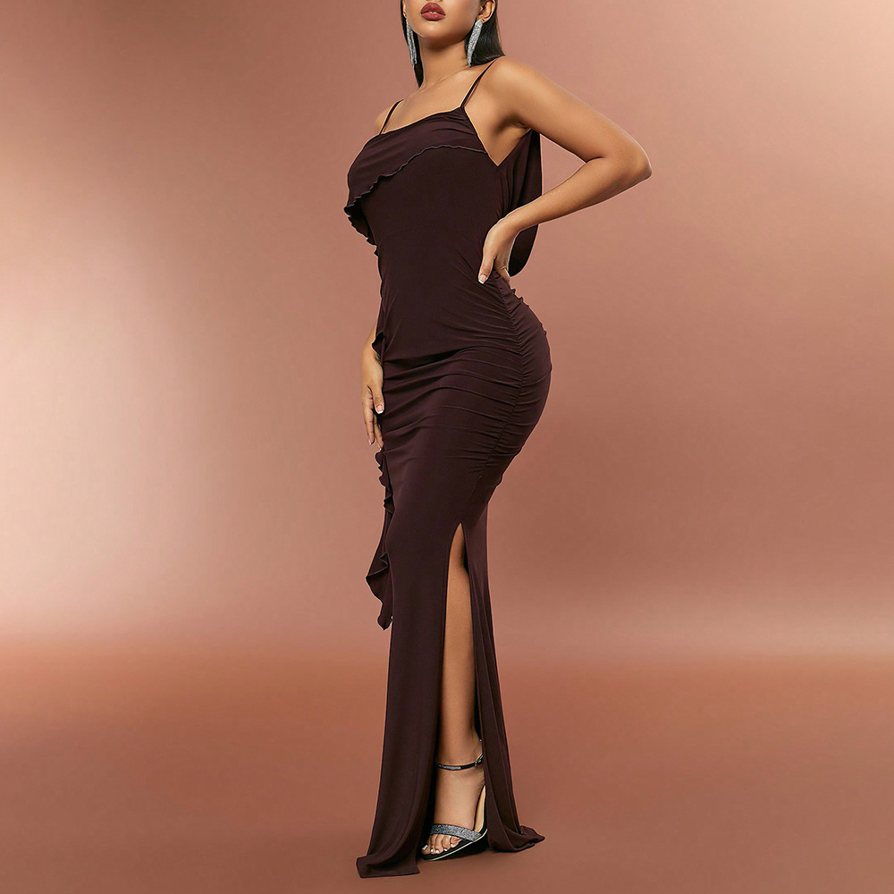 Turn heads in this stunning ruched maxi dress, featuring a sleek satin finish, adjustable spaghetti straps, and a daring high slit. The waist-cinching design and flowing tassel detail create an ultra-glamorous silhouette, perfect for formal events, weddings, and evening parties. Pair it with heels and a clutch for a show-stopping look!