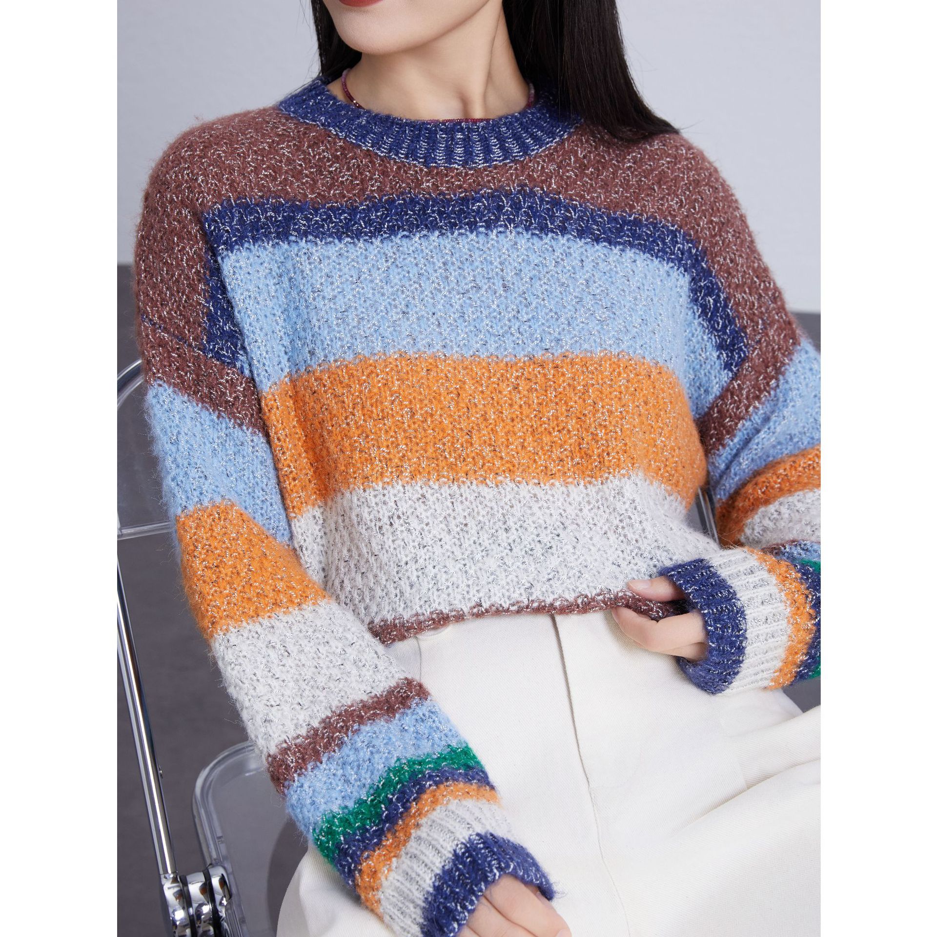 Article number:-Brand: OthersFabric name: knittedMain fabric composition: spandexPattern: RainbowThickness: MediumCombination shape:: PulloverEdition: loosesleeve::Sleeve length: Long Sleeveelement:Clothes length: ordinary (&; Clothes length≤)No iron treatmentColor: blue and purple, white apricotSize: All sizeCategory:Wearing Party: PulloverMain fabric composition content: less than %Pinnipe: PulloverNo: No