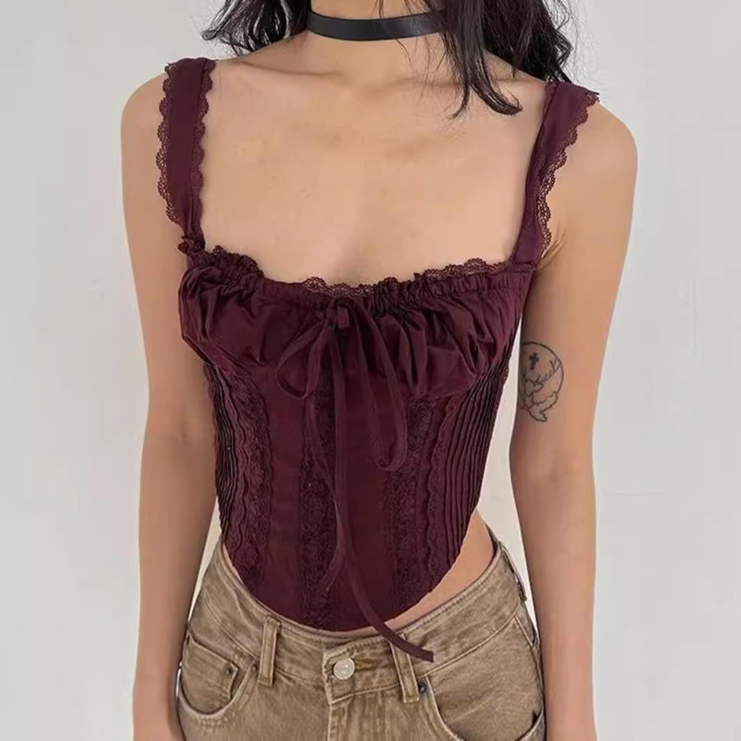 This sexy bustier top blends vintage elegance with a modern silhouette. Featuring delicate lace trim and an adjustable lace-up back, it hugs your curves for a perfect fit. The cropped design enhances your waistline, making it an ideal choice for pairing with high-waisted jeans or skirts. Whether for a night out or a chic daytime look, this statement piece will elevate your style effortlessly.