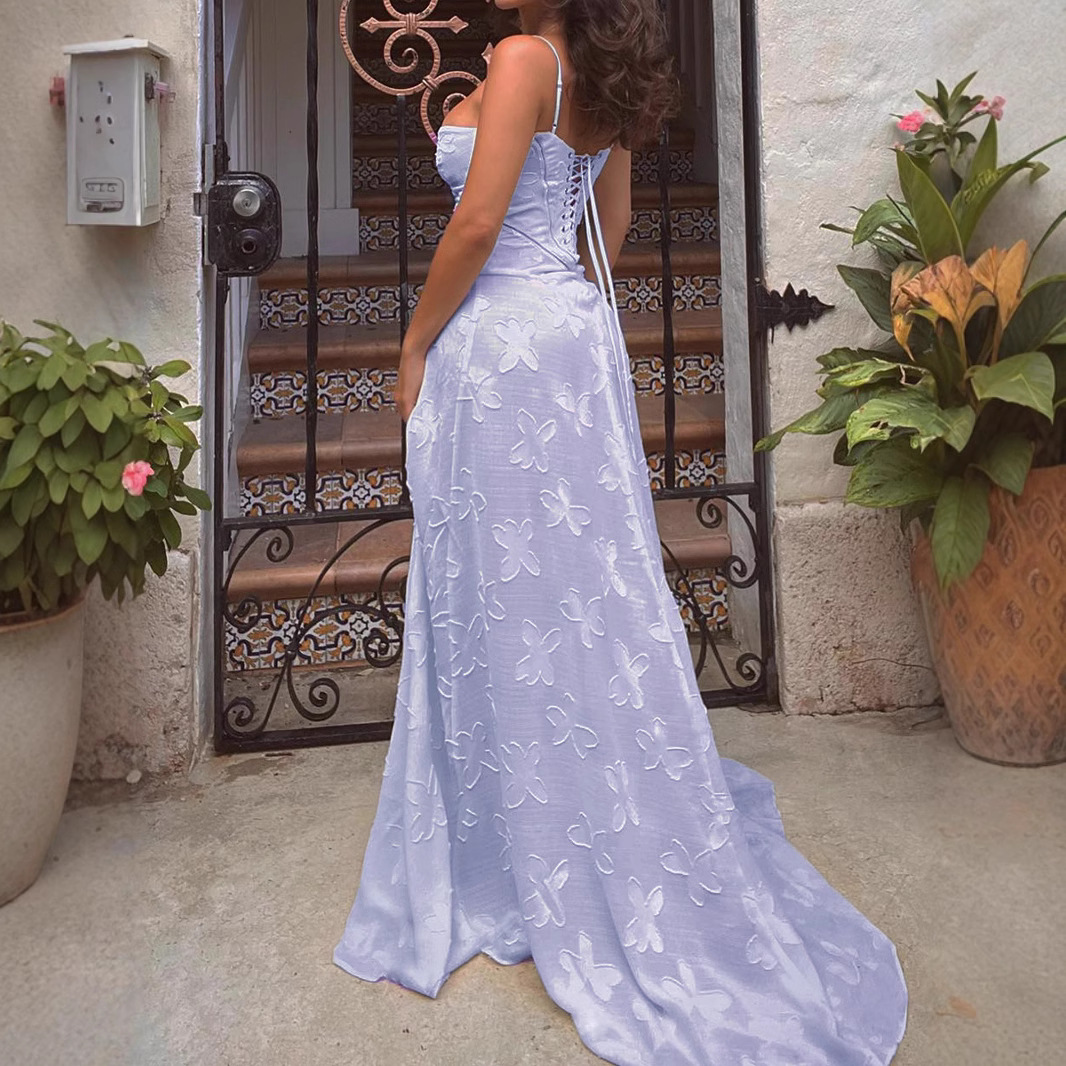 Step into a world of elegance and allure with this romantic sheer lace gown, designed to exude grace and femininity. The corset bodice with delicate lace-up detailing sculpts your waist for a flattering silhouette, while the flowy sheer embroidered skirt creates a dreamy, ethereal effect. The off-shoulder draping straps add a soft, romantic touch, making this dress perfect for formal events, elegant evenings, and special occasions. A timeless statement piece for those who love sophisticated yet effortlessly sexy fashion.