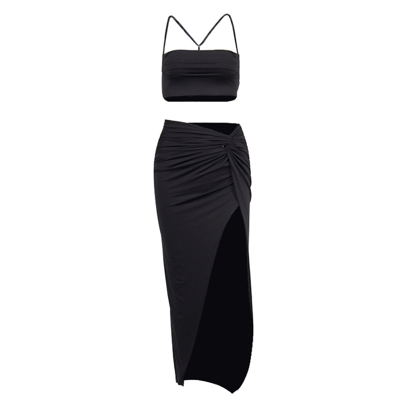 This ruched crop top and high slit maxi skirt set combines style and comfort. The crop top with adjustable straps and the high-waisted skirt with a daring thigh-high slit flatter your silhouette beautifully. Made with milk silk fabric, the set is soft, breathable, and stretchy for a perfect fit. Ideal for night outs, summer parties, and vacations, this versatile 2-piece set is available in 8 stunning colors. Whether you’re heading to a beach party or an elegant dinner, this set will make you look effortlessly chic and stylish.