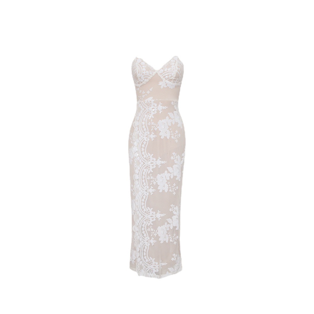Dazzle in this stunning sequin lace evening dress, designed for elegance and allure. The body-hugging silhouette highlights your curves, while the delicate lace embroidery adds a touch of romance. Featuring a deep V neckline and open back, this dress is perfect for making a statement at weddings, cocktail parties, and formal events. The high side slit ensures effortless movement, adding a sultry edge to your sophisticated look.