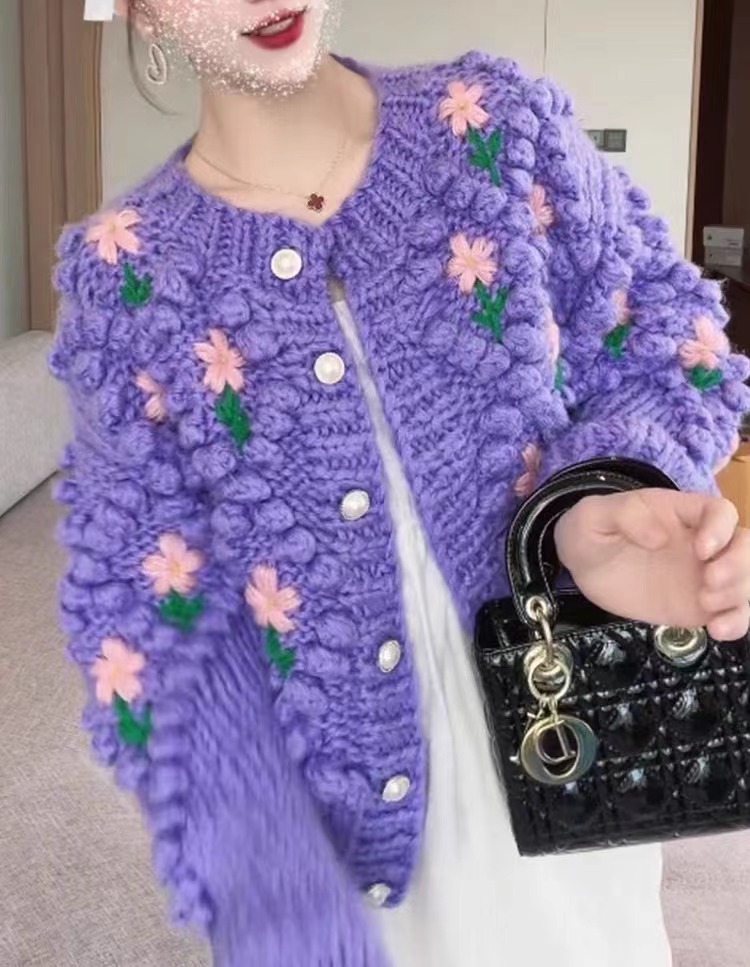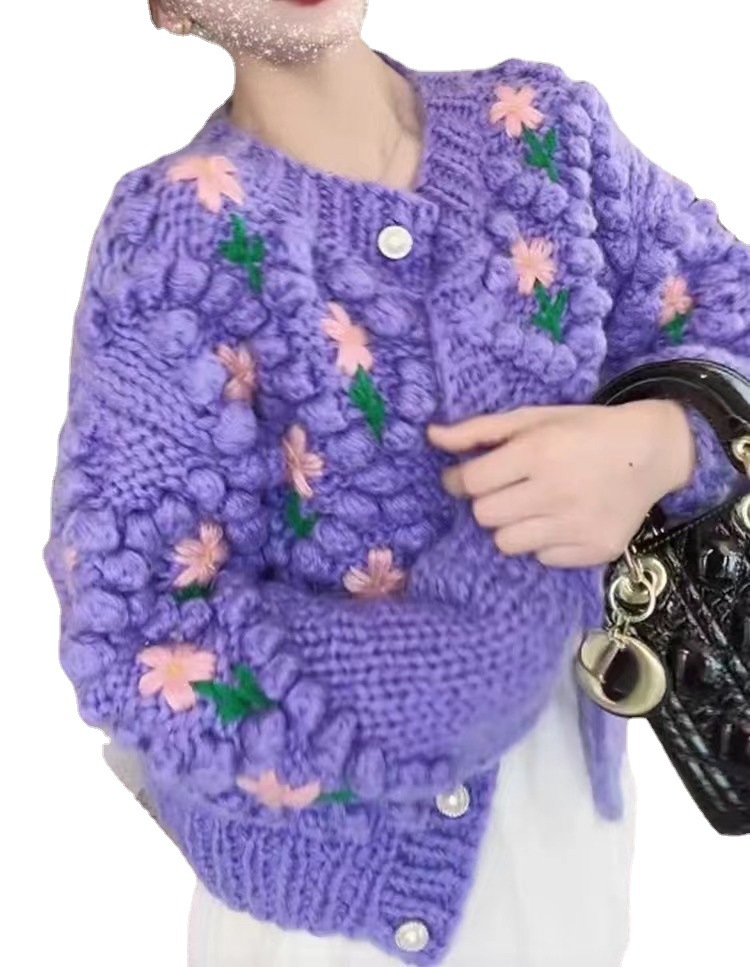 Item number:Fabric name: woolMain fabric ingredients: Ma Hai MaoPattern: FloralThick: medium: CardiganCombination shape:Edition: LooseClothing length: ordinary (≤ length ≤)BesidesSleeve length: long sleeveSleeve: conventional sleeveElement: HookingEmbroidery/embroideryColor: violet, rice whitesize:,Class: SweetWear: CardiganMain fabric composition content:%and belowLab: Shan DuoForestClass: SweetWhether: isMain downstream sales areas:Main downstream sales areas: